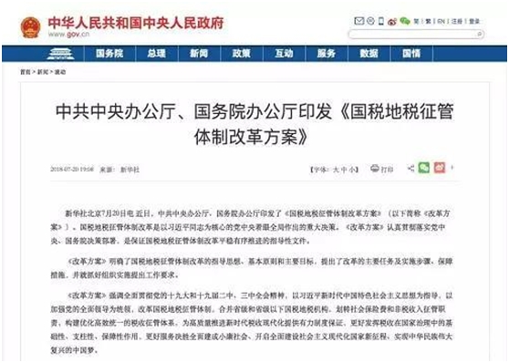 ????????7月20日,中共中央辦公廳、國務(wù)院辦公廳印發(fā)《國稅地稅征管體制改革方案》,明確從2019年1月1日起,將基本養(yǎng)老保險(xiǎn)費(fèi)、基本醫(yī)療保險(xiǎn)費(fèi)、失業(yè)保險(xiǎn)費(fèi)、工傷保險(xiǎn)費(fèi)、生育保險(xiǎn)費(fèi)等各項(xiàng)社會(huì)保險(xiǎn)費(fèi)交由稅務(wù)部門統(tǒng)一征收。