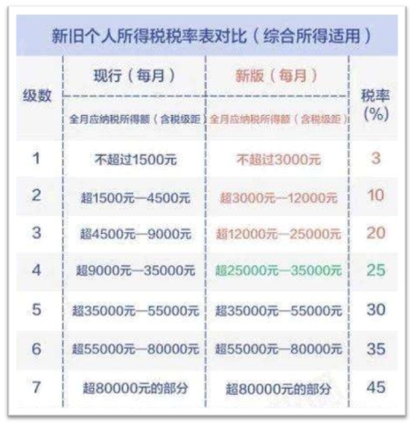 ????????新舊個(gè)稅稅率表對比圖如下: