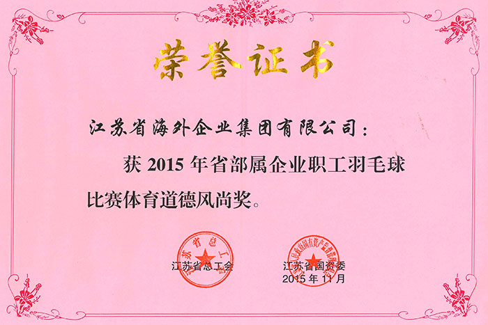 ????????我司龔堅(jiān)、周兵、王光毅、黃鏡清代表江蘇省海外企業(yè)集團(tuán)參加了男子單打項(xiàng)目的角逐。本次比賽旨在加強(qiáng)企業(yè)文化和職工文化建設(shè),提高職工健康水平,我司參賽選手秉承頑強(qiáng)拼搏、力爭(zhēng)上游、團(tuán)結(jié)互助的比賽精神,在賽場(chǎng)上不畏強(qiáng)敵,揮汗如雨,奮勇爭(zhēng)先。他們矯健的身影,激烈的對(duì)抗,流著汗水的表情成了羽毛球館內(nèi)一道靚麗的風(fēng)景線。經(jīng)過(guò)兩天緊張激烈的比賽,我司隊(duì)員獲得了賽會(huì)頒發(fā)的體育道德風(fēng)尚獎(jiǎng),賽出了風(fēng)格、賽出了自我、賽出了友誼。