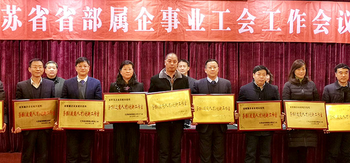 ????????新年伊始,我司獲得了由省部屬企事業(yè)工會(huì)頒發(fā)的首批“省部屬企業(yè)系統(tǒng)示范性勞模(技能人才)創(chuàng)新工作室”榮譽(yù)命名。公司工會(huì)主席周兵同志代表參加了“江蘇省省部屬企事業(yè)工會(huì)工作會(huì)議”并接受頒發(fā)表彰。