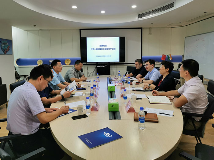 ????????2020年8月11日,省農(nóng)業(yè)農(nóng)村廳對外交流合作處一級調(diào)研員田玉斌、一級主任科員馮得勝、連云港市農(nóng)業(yè)農(nóng)村局對外經(jīng)濟(jì)合作中心主任范郁爾、南京農(nóng)業(yè)大學(xué)經(jīng)管學(xué)院副教授劉愛軍等一行領(lǐng)導(dǎo)來我司調(diào)研江蘇—新陽嘎農(nóng)工貿(mào)現(xiàn)代產(chǎn)業(yè)園棉花、紡紗產(chǎn)業(yè)發(fā)展。